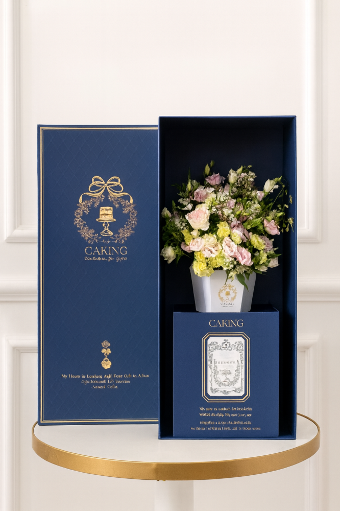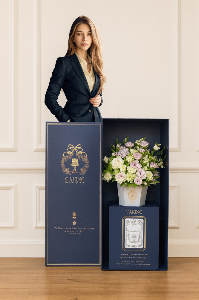 صندوق مترف بتوقيع GÂTAGE يحتوي علئ غاصة ورد مترفة ، يمكنك اضافة البالون والشرائط من قسم اضافات علئ الهدية .